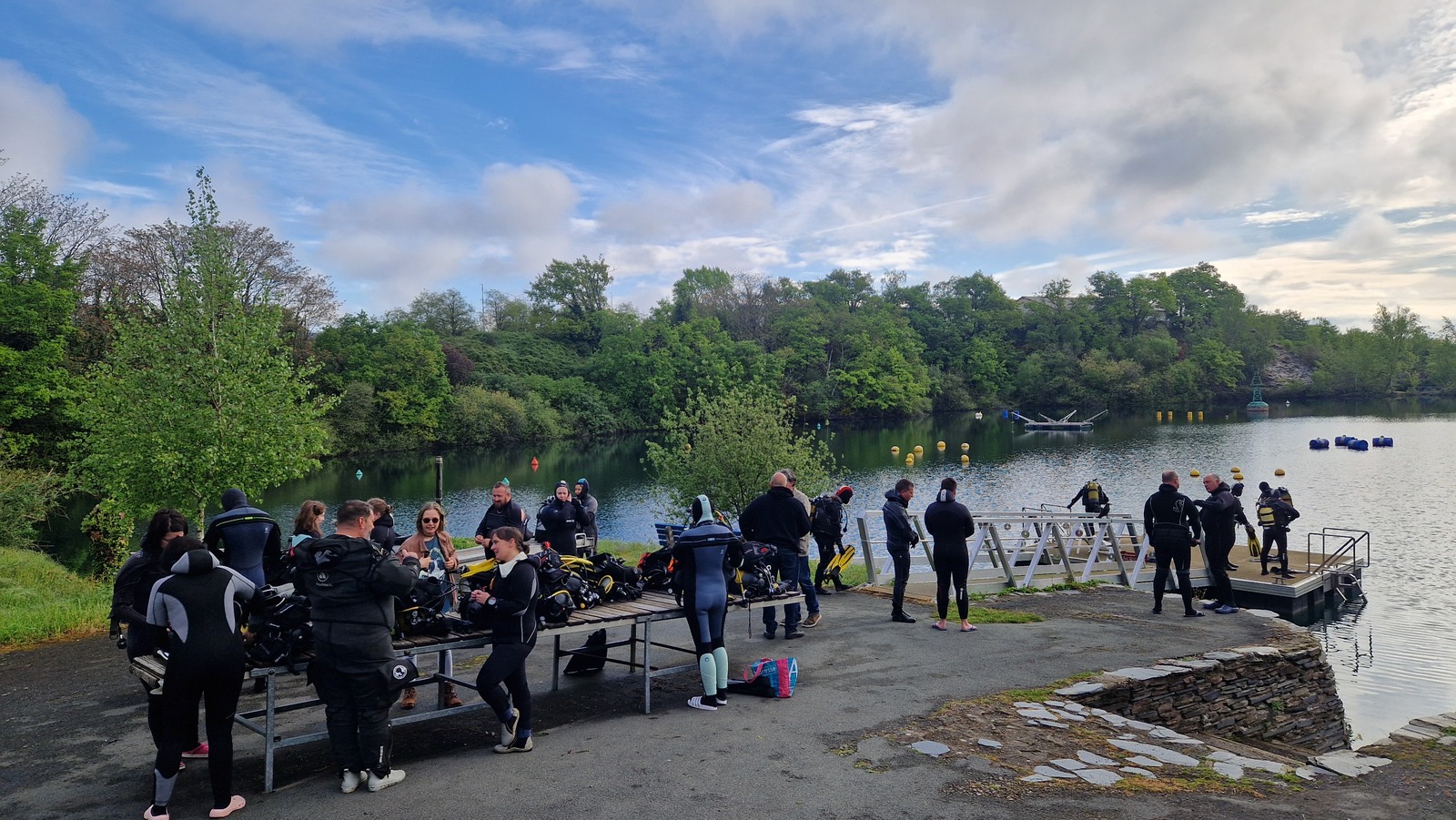Pendant que le groupe "Corse" était sur le chemin du retour, 9 valeureux Trapards ont trempé les palmes pour 2 plongées dans les eaux troubles et froides de la carrière des Fresnaies à Trélazé, prés d'Angers.
